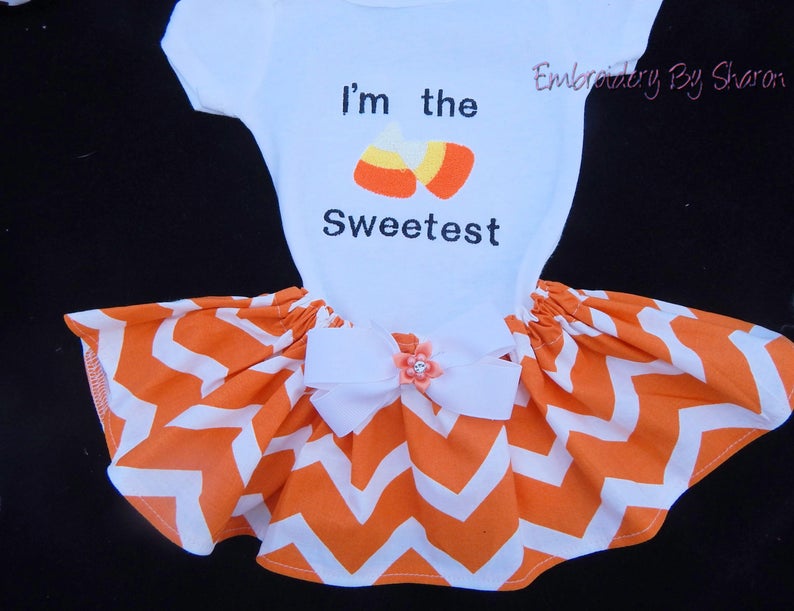Baby Girl Halloween Candy Corn Dress – Costume or Party she will be ready for the FUN