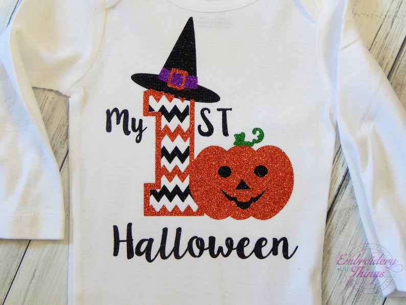 My First Halloween Bodysuit – For boy or girl. First Halloween Boy, First Halloween Girls, Order with or without legwarmers