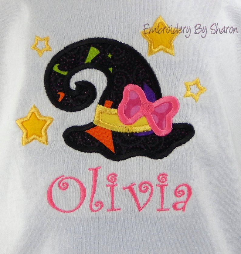 This Adorable Witches Toddler Halloween T shirt and Bow that can be Personalized for Free is a colorful way to ring in the Halloween season.